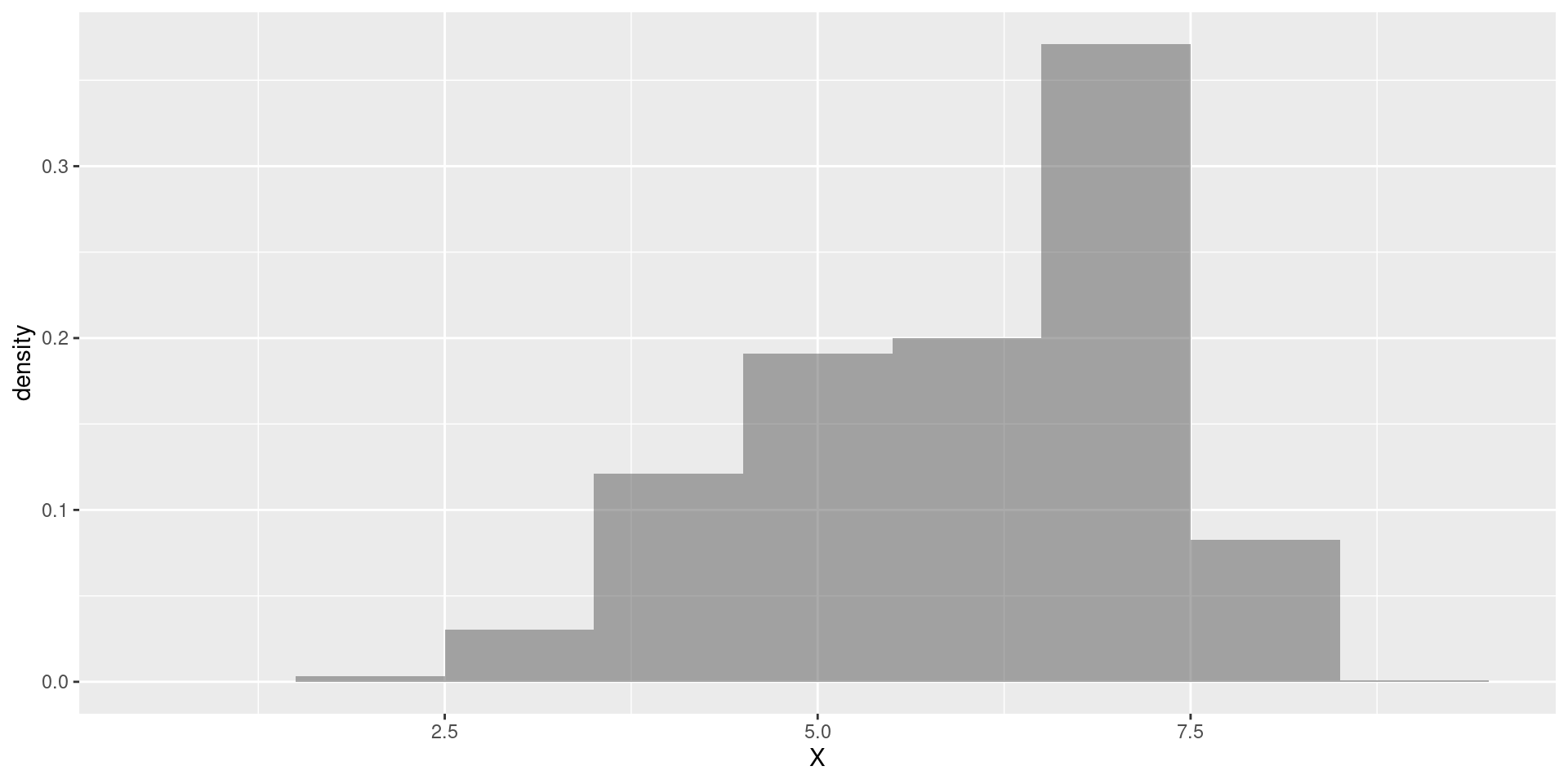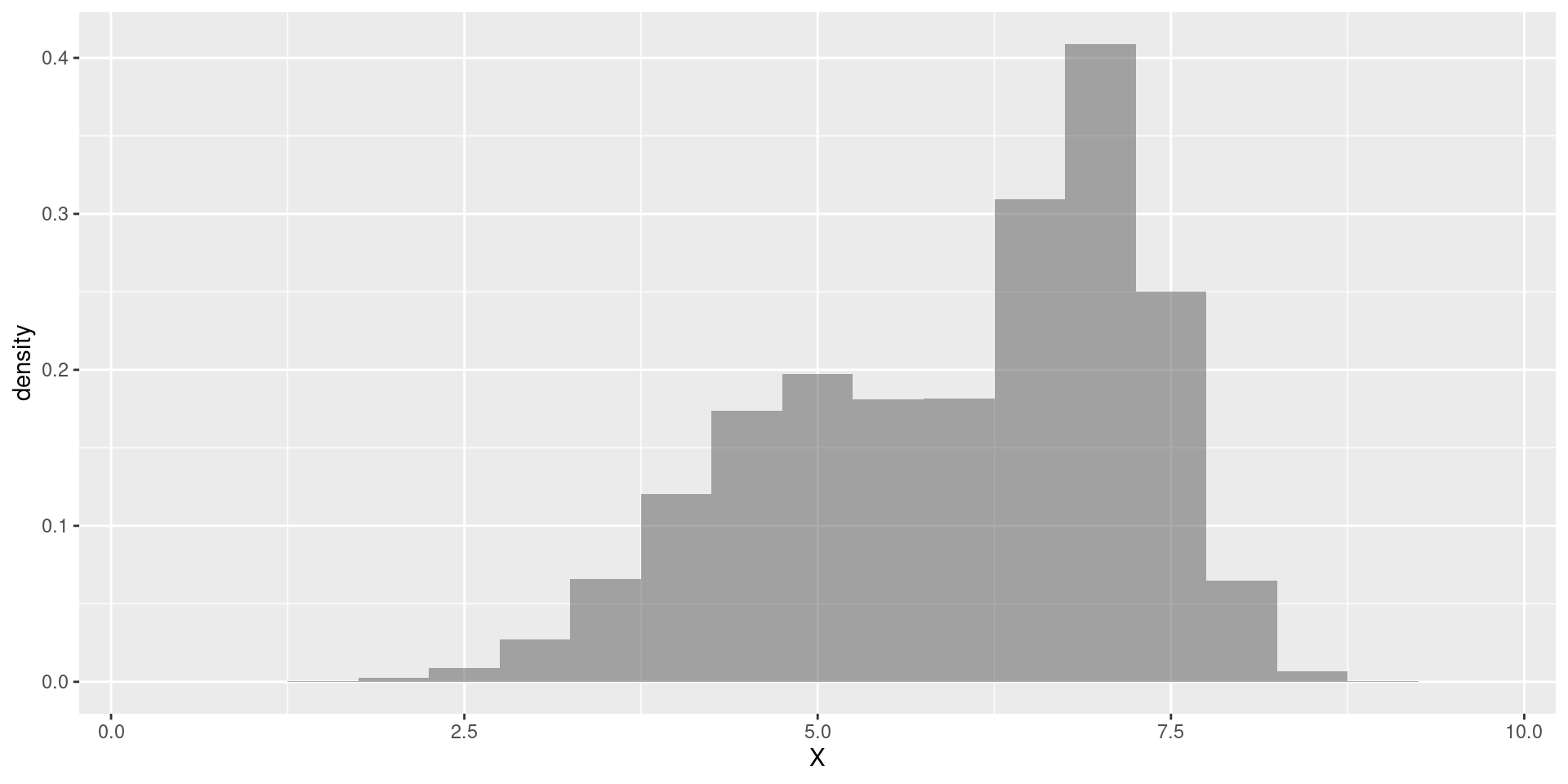 \(\operatorname{P}(X \ge a) = {}\) the area under the density curve, to the right of \(a\).